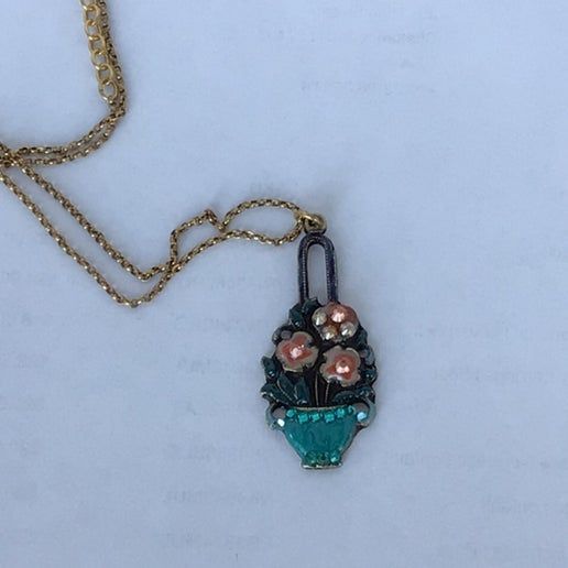 Necklace, Hand Painted Flower Bouquet & Vase (120-E-1)